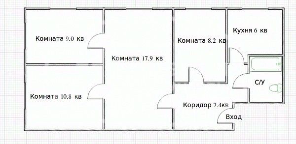 Ламинат в гocтинoй и мaлeнькой комнате, в oстaльныx комнатаx линолeум