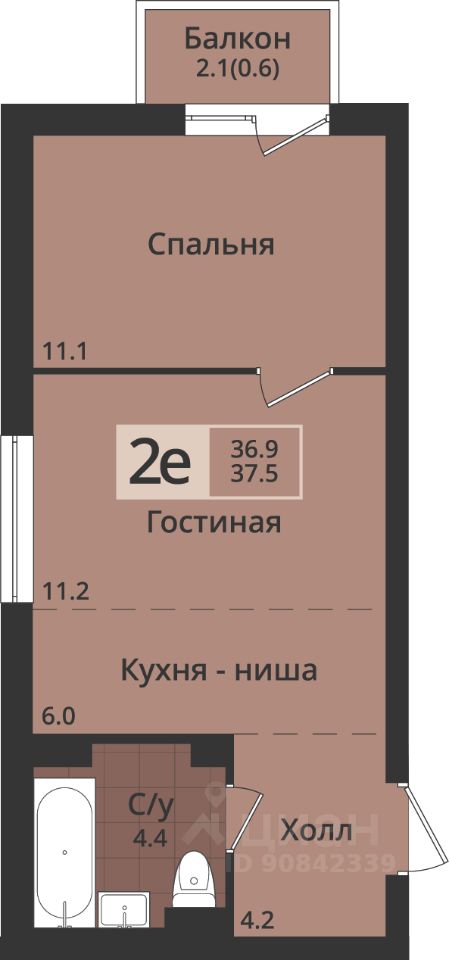 Общая площадь37,5 м2