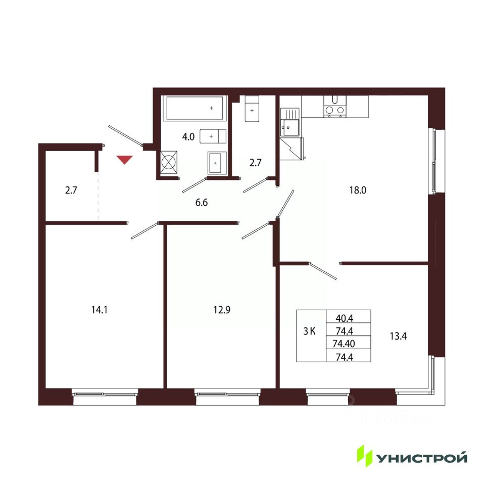 Общая площадь74,4 м2