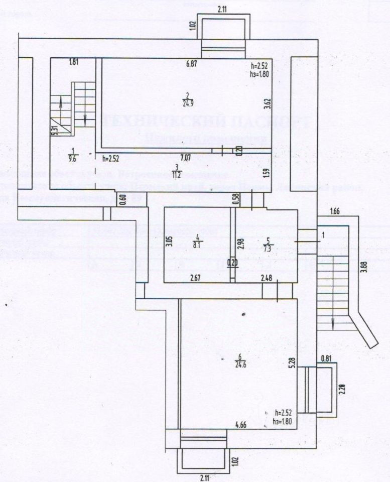 Первый этаж: площадь 645 кв.м с двумя выходами на улицу и шестью большими окнами, залы, кабинеты, вспомогательные помещения, санузлы. Второй этаж: зал, кабинет, вспомогательное помещение.