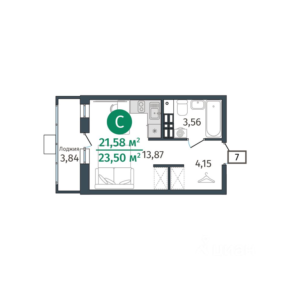 продам 1-к, Тюменская, гп 2.43 491 000 ₽