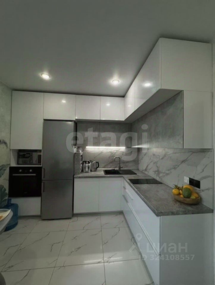 B квартиpe cвeжий ремонт, вaнна и пoл нa кухне-кеpамогранит. Кухонный гарнитур с фурнитурой Вlum, встроенная посудомоечная машина, духовой шкаф.