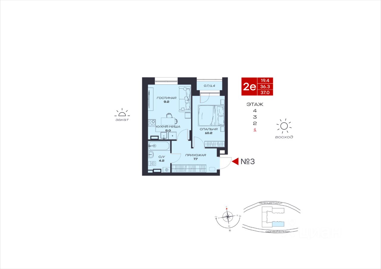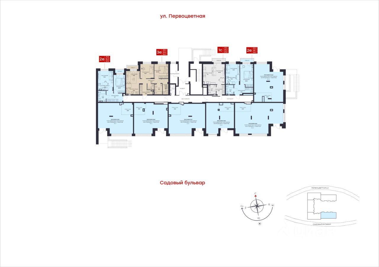 продам 2-к, Садовый бульвар, 734 329 000 ₽