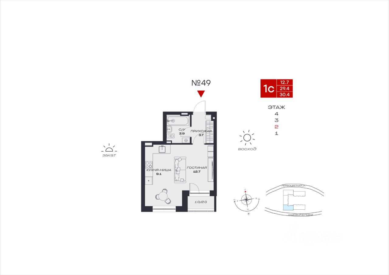 Общая площадь30,4 м2