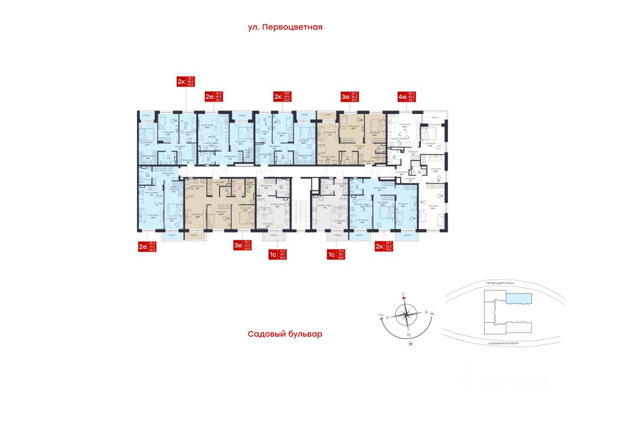 продам 2-к, Садовый бульвар, 735 733 000 ₽