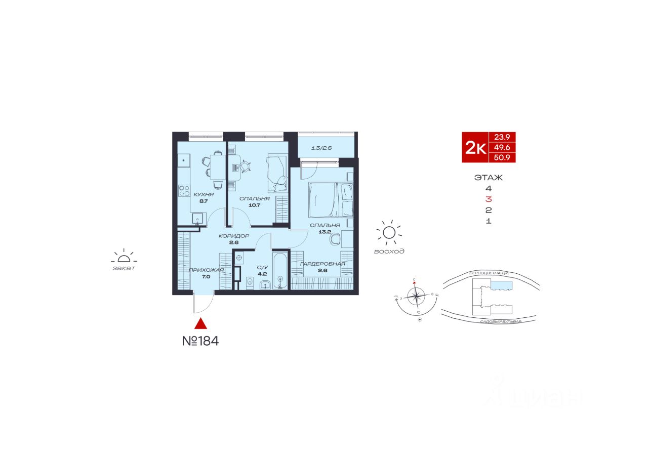 Общая площадь50,9 м2