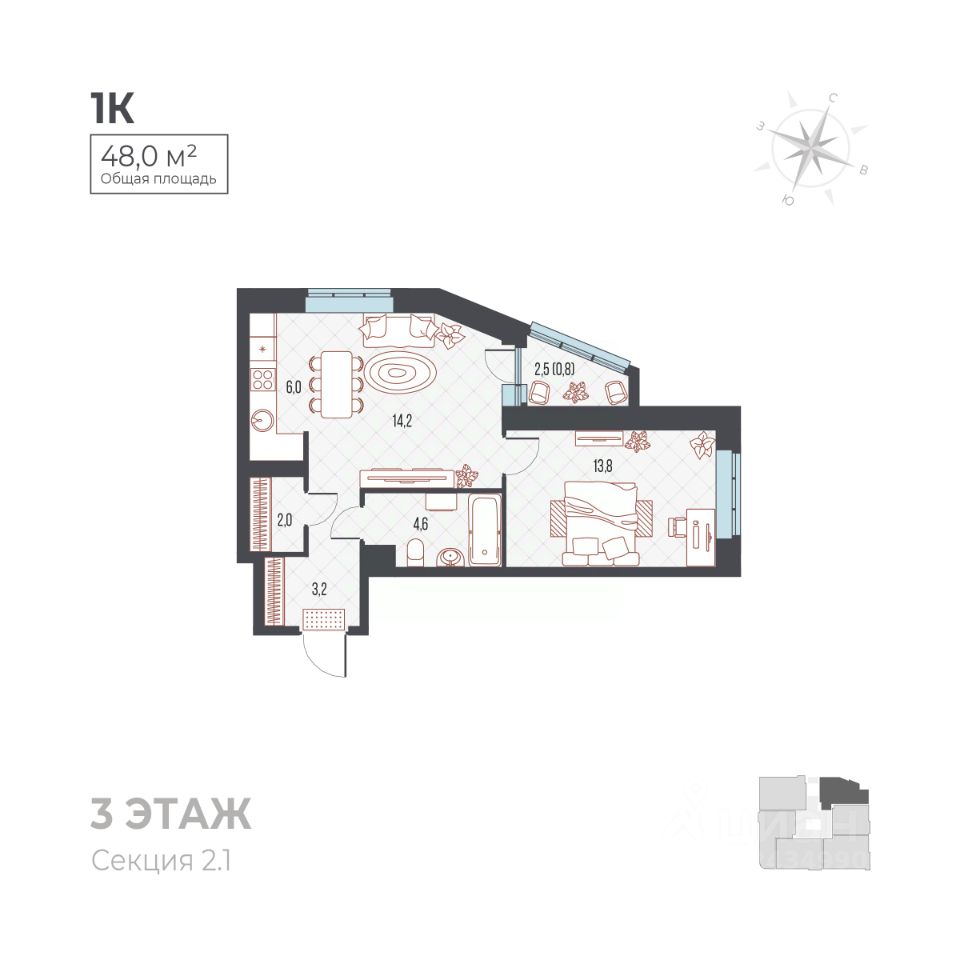 продам 1-к, Ивана Франко, 33 корп. 16 432 000 ₽
