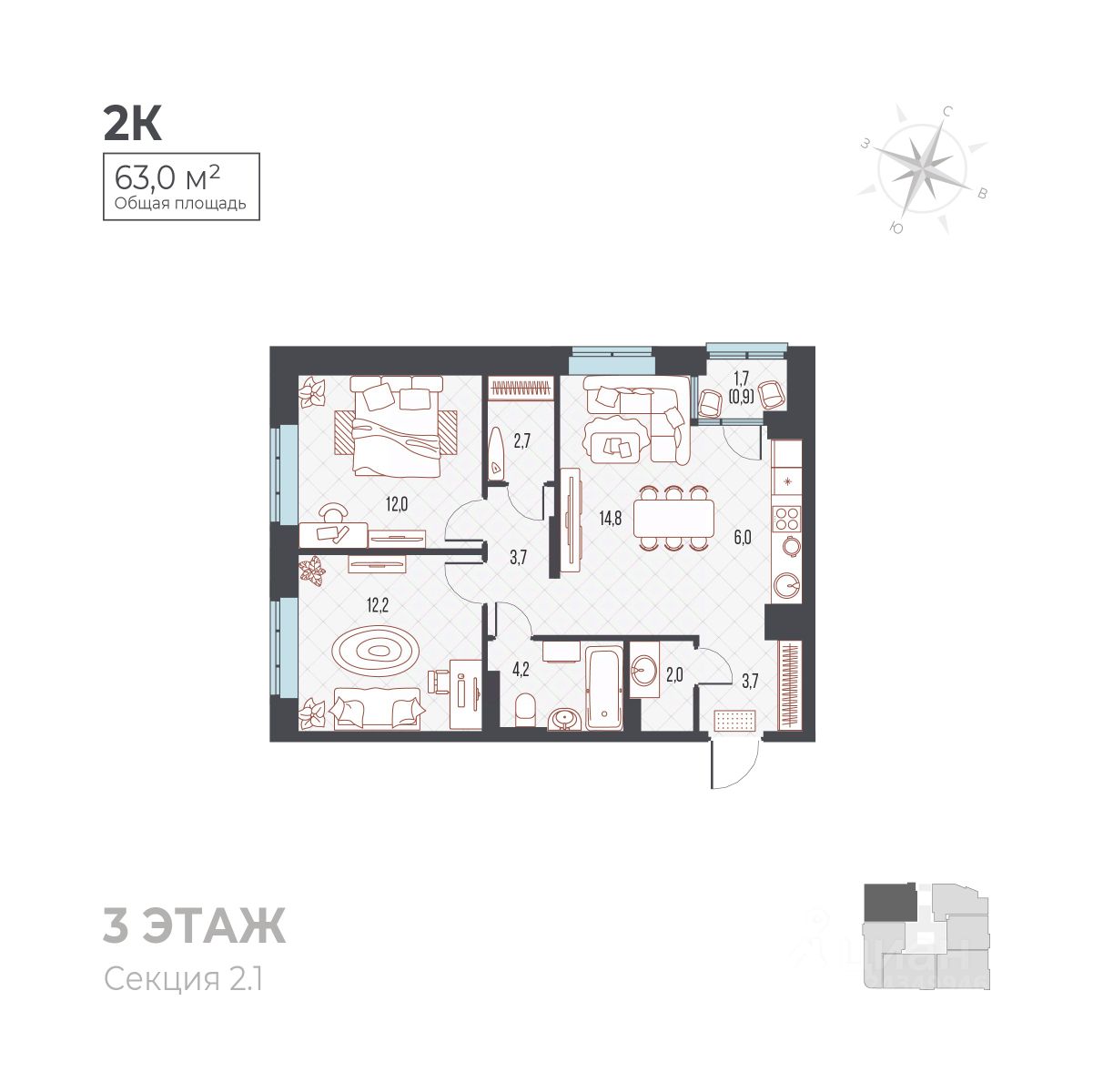 продам 2-к, Ивана Франко, 33 корп. 18 745 000 ₽