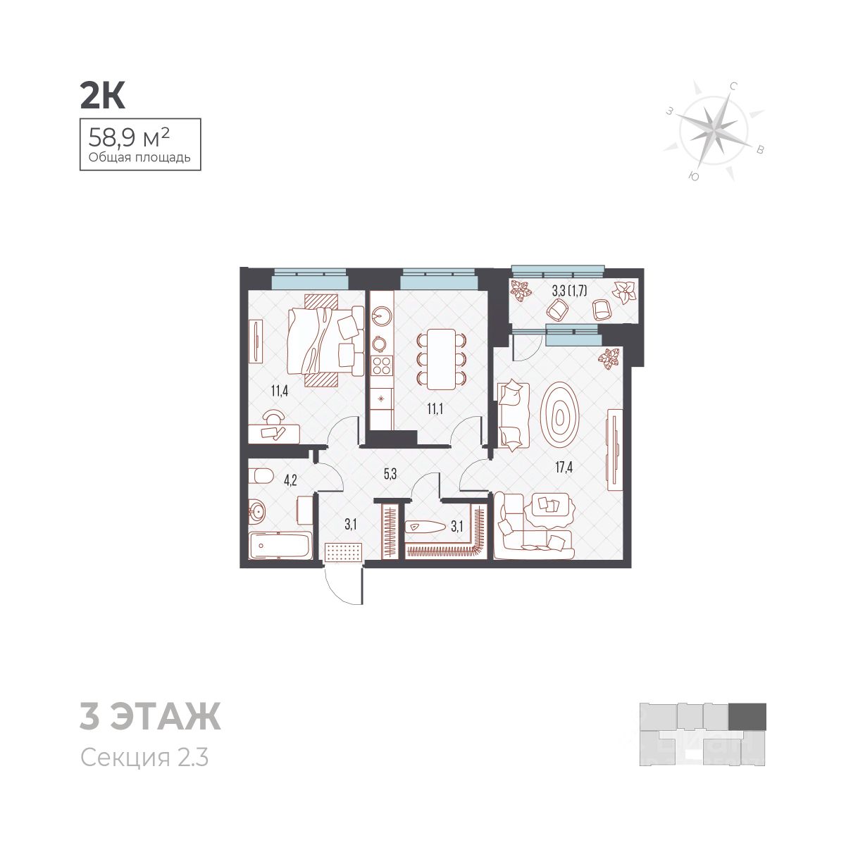 продам 2-к, Ивана Франко, 33 корп. 17 844 060 ₽