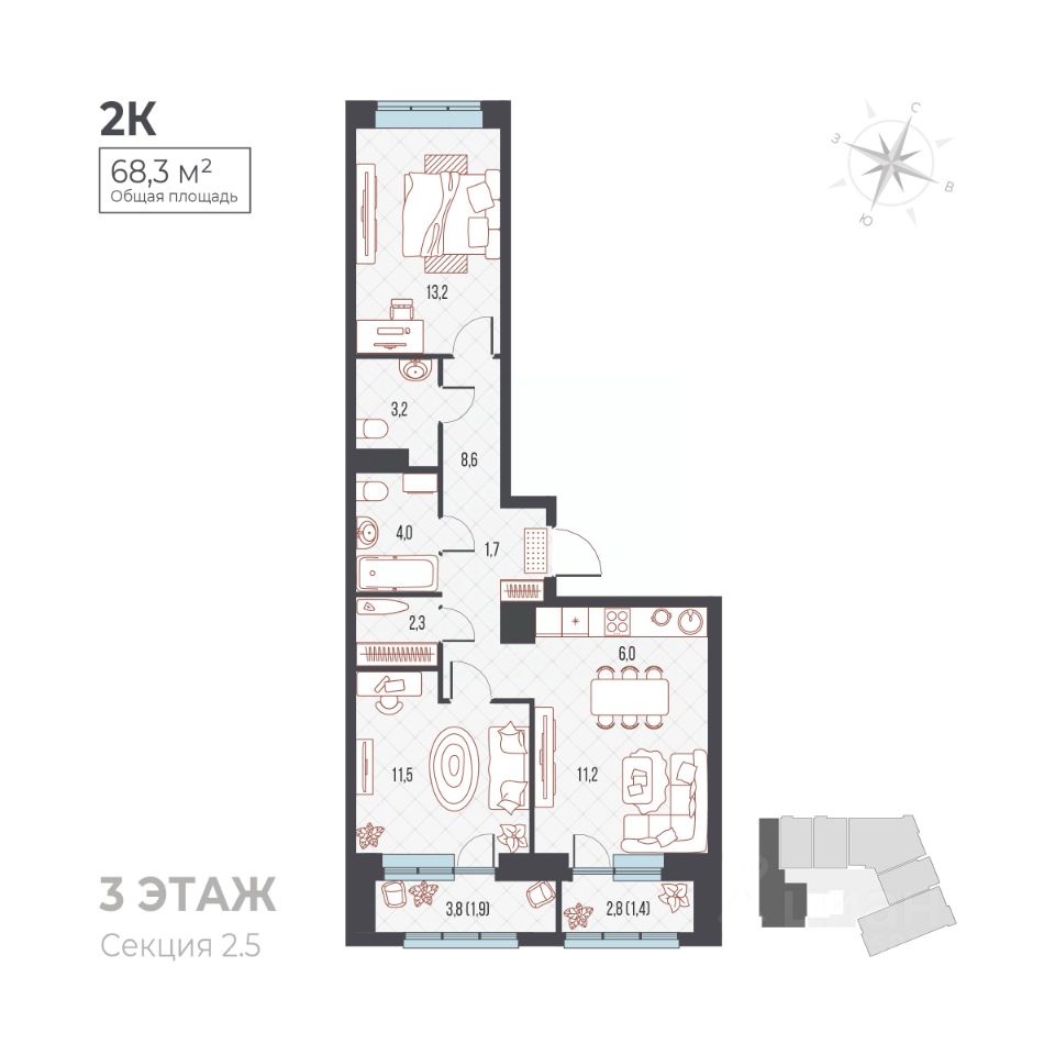 продам 2-к, Ивана Франко, 33 корп. 19 138 540 ₽