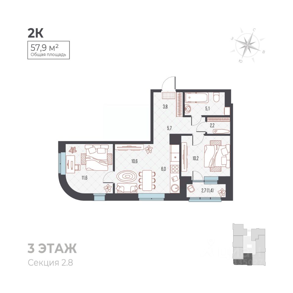 продам 2-к, Ивана Франко, 33 корп. 18 113 500 ₽