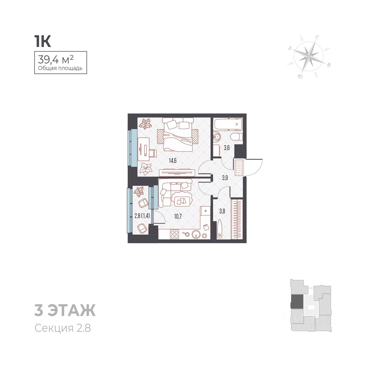 продам 1-к, Ивана Франко, 33 корп. 15 594 800 ₽