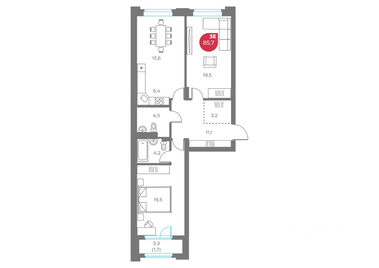 Общая площадь85,7 м2