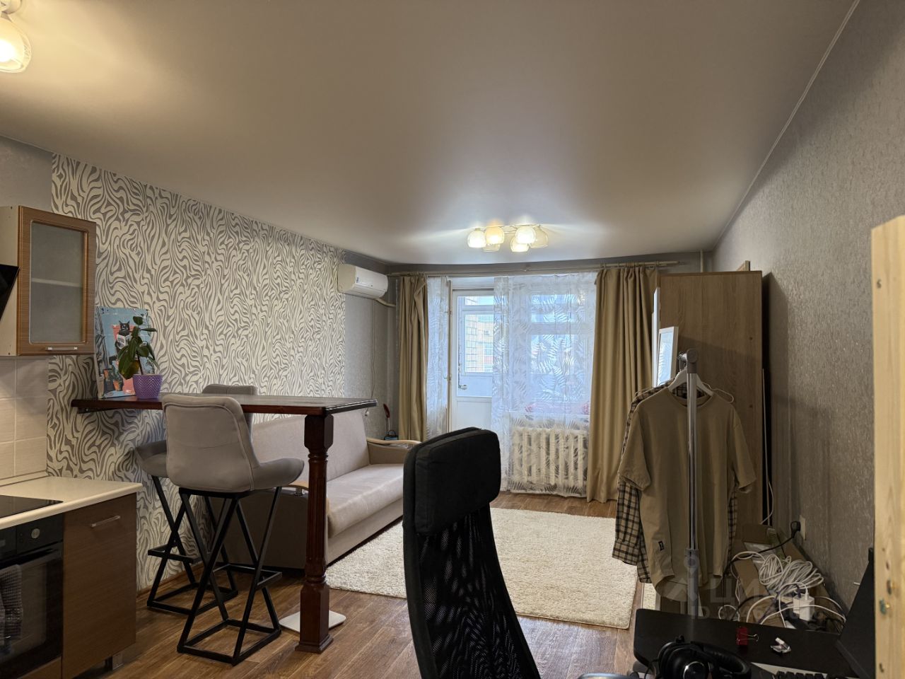 Маленькая уютная студия. Подойдёт для молодой пары или девушки. Рядом школа ,магазины, озон, вб. Из окна видно Лес, рядом парк. Есть парковка