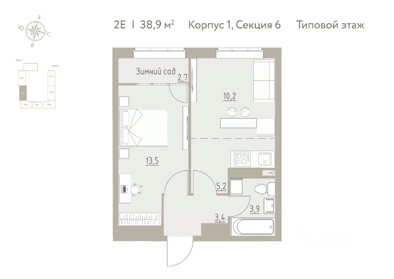 Общая площадь38,9 м2