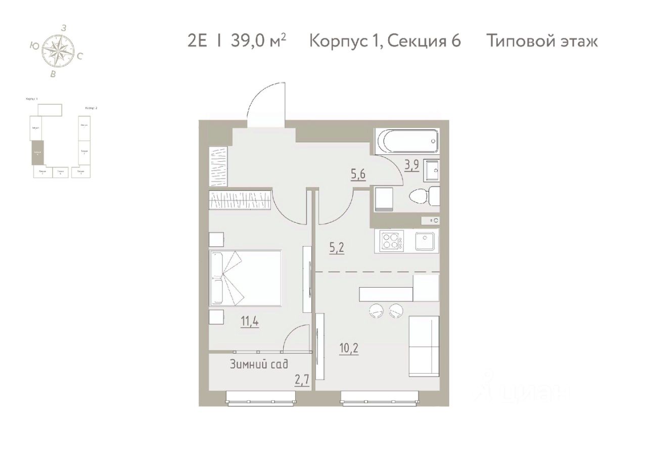 Общая площадь39 м2