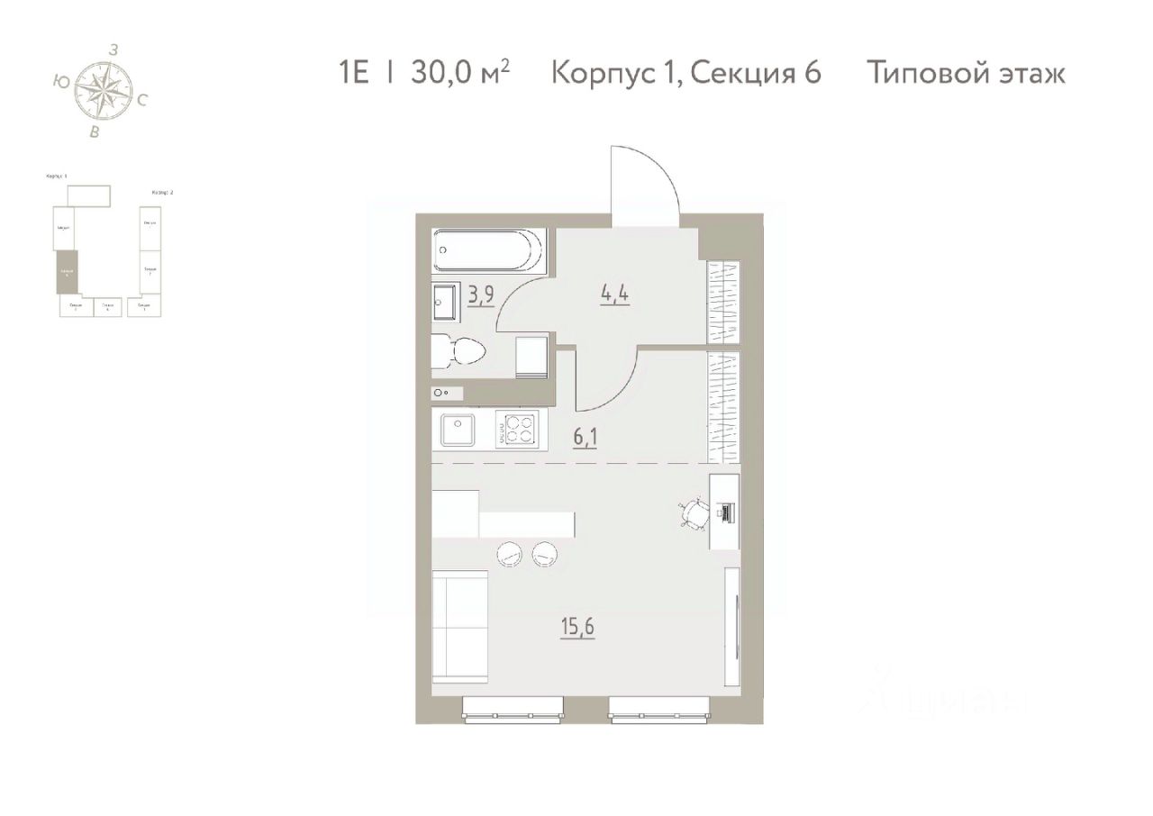 Общая площадь30 м2