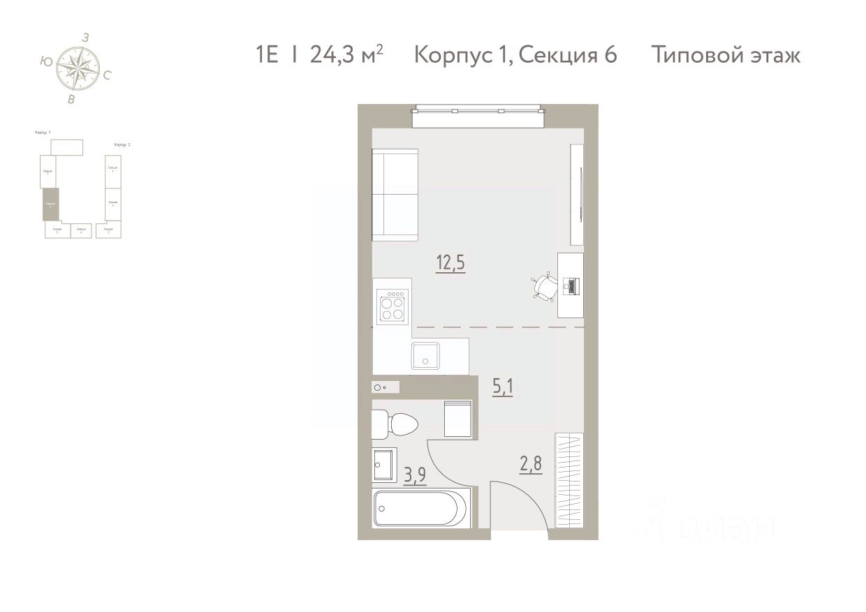Общая площадь24,3 м2