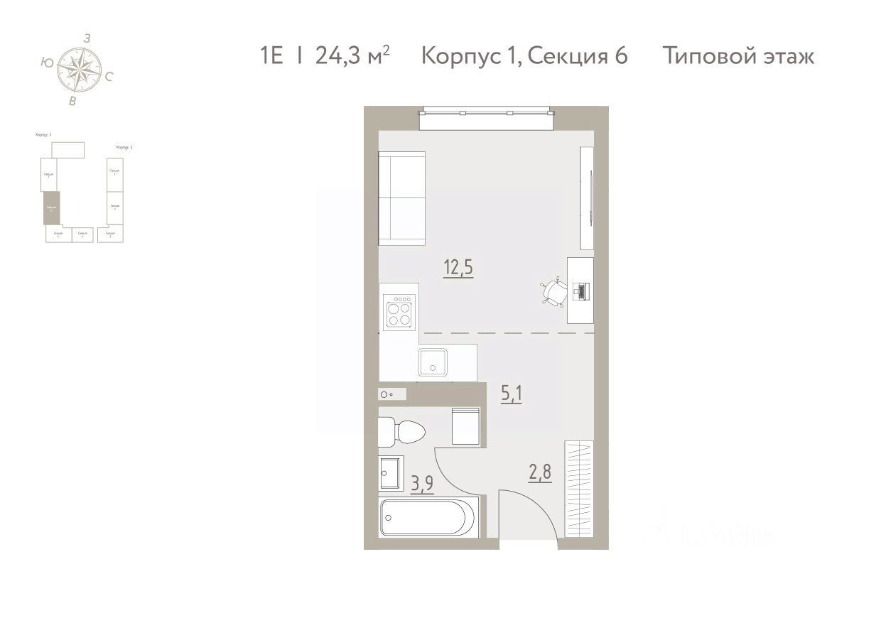 Общая площадь24,3 м2