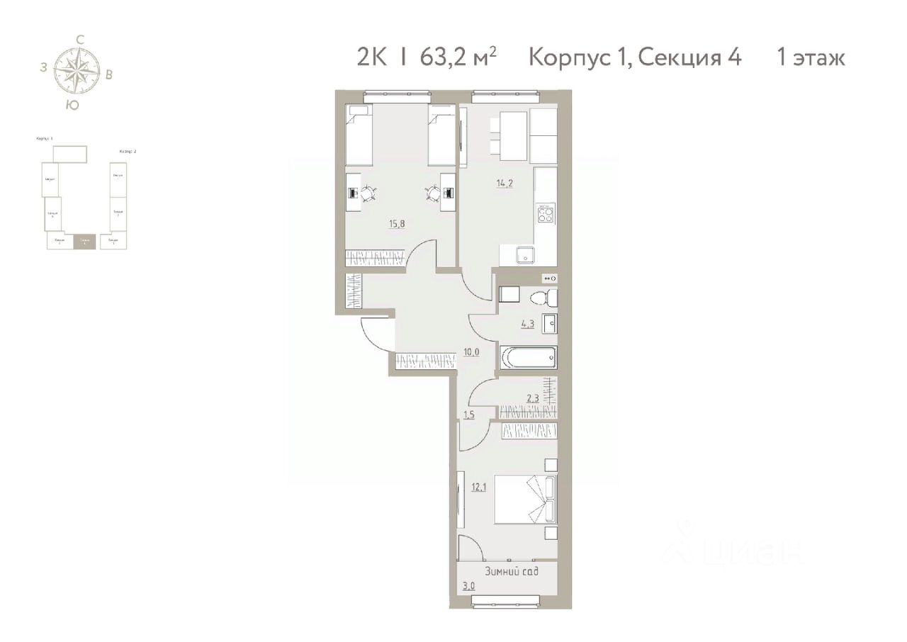 Общая площадь63,2 м2