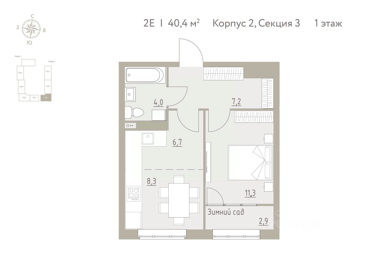 Общая площадь40,4 м2