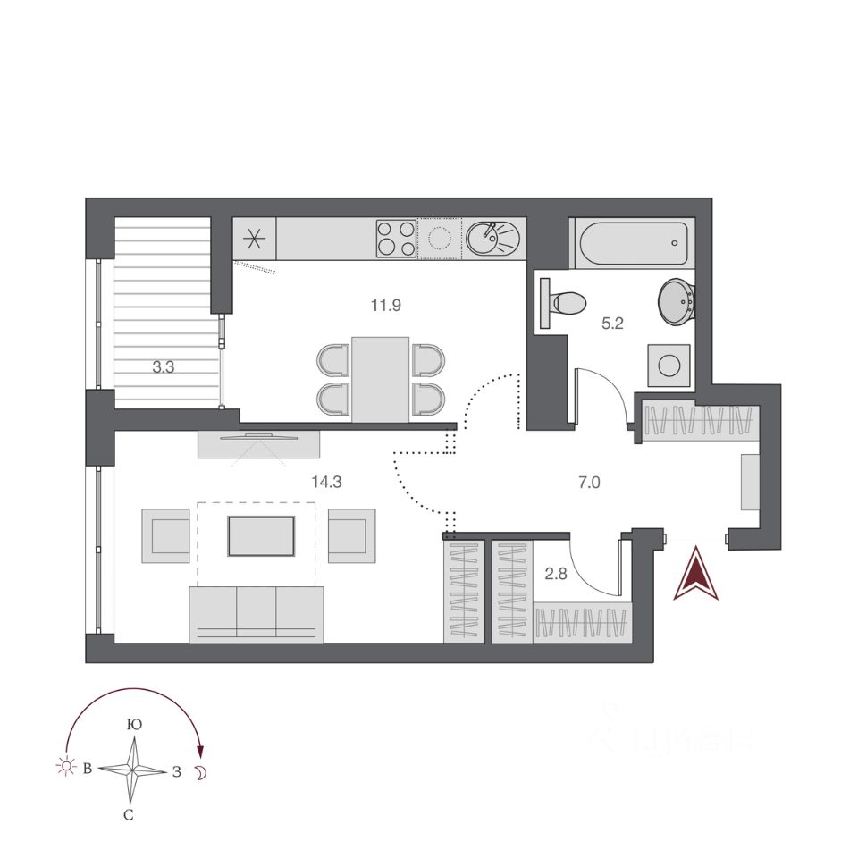Жилая площадь14,1 м2