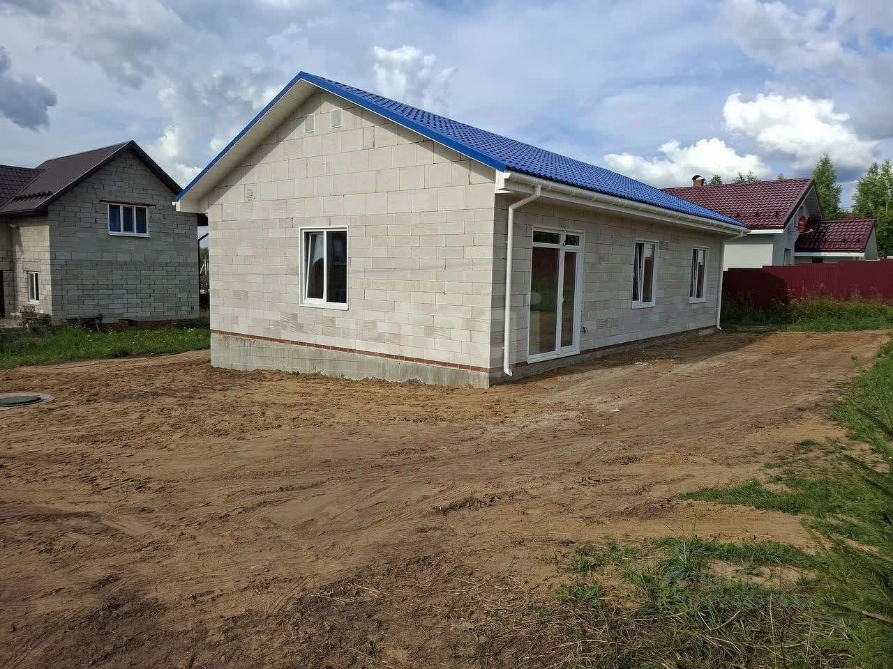 Общая площадь: 94 м², 1 этаж Планировка: 3 спальни, просторная кухня-гостиная, прихожая, котельная, совмещённый санузел Материал стен — газоблок, надёжный и тёплый Все коммуникации заведены в дом Отопление — электрическое (тёплый и экономичный вариант) Водоснабжение — скважина, канализация — станция биологической очистки Год постройки — 2025
