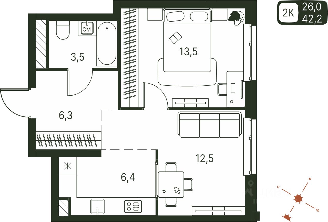 Продаётся студия в строящемся доме (Серебристая, 1), срок сдачи: IV-кв. 2027, общей площадью 42.2 кв.м., на 2 этаже. Теплые кварталы ''Погода'' — это новый грандиозный проект от создателя Спортивного микрорайона ''Ива'', федерального застройщика ''Девелопмент-Юг'' .