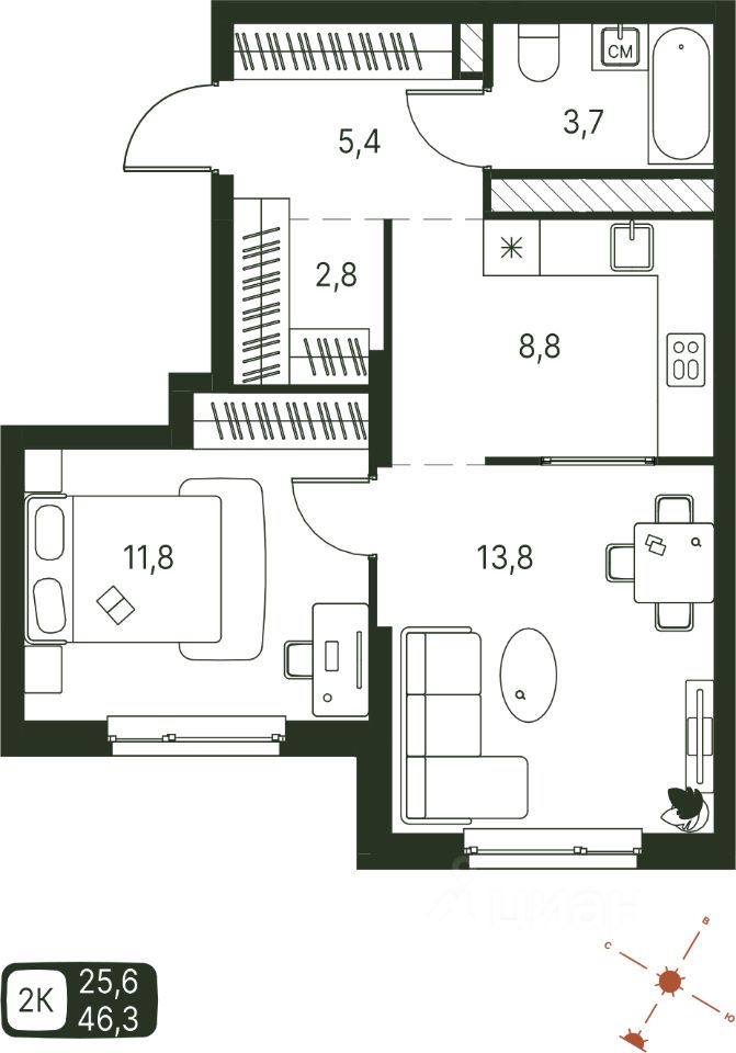 Продаётся студия в строящемся доме (Серебристая, 1), срок сдачи: IV-кв. 2027, общей площадью 46.3 кв.м., на 10 этаже. Теплые кварталы ''Погода'' — это новый грандиозный проект от создателя Спортивного микрорайона ''Ива'', федерального застройщика ''Девелопмент-Юг'' .