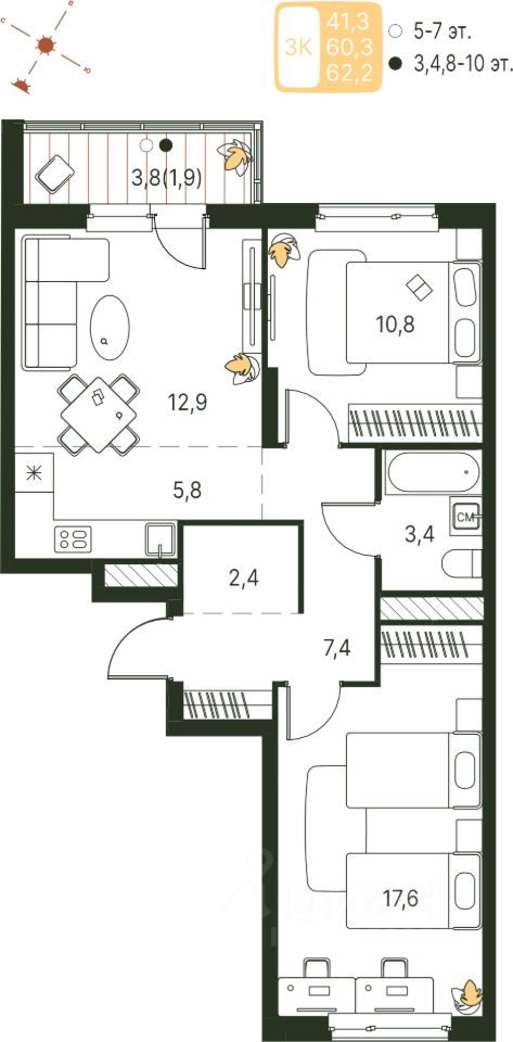 Продаётся студия в строящемся доме (Серебристая, 1), срок сдачи: IV-кв. 2027, общей площадью 62.2 кв.м., на 4 этаже. Теплые кварталы ''Погода'' — это новый грандиозный проект от создателя Спортивного микрорайона ''Ива'', федерального застройщика ''Девелопмент-Юг'' .