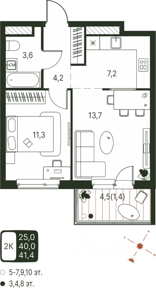 Продаётся студия в строящемся доме (Серебристая, 1), срок сдачи: IV-кв. 2027, общей площадью 41.4 кв.м., на 3 этаже. Теплые кварталы ''Погода'' — это новый грандиозный проект от создателя Спортивного микрорайона ''Ива'', федерального застройщика ''Девелопмент-Юг'' .
