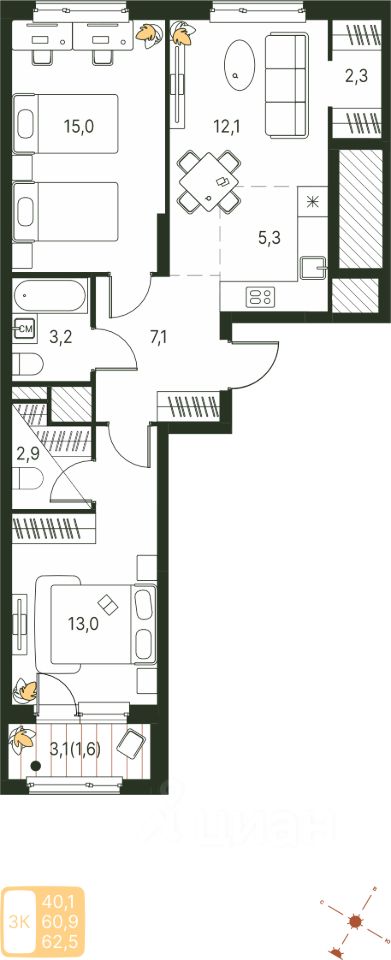 Продаётся студия в строящемся доме (Серебристая, 1), срок сдачи: IV-кв. 2027, общей площадью 62.5 кв.м., на 4 этаже. Теплые кварталы ''Погода'' — это новый грандиозный проект от создателя Спортивного микрорайона ''Ива'', федерального застройщика ''Девелопмент-Юг'' .