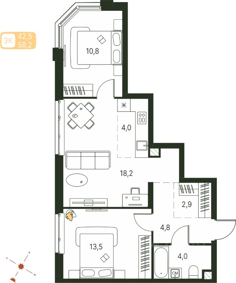 Продаётся студия в строящемся доме (Серебристая, 1), срок сдачи: IV-кв. 2027, общей площадью 58.2 кв.м., на 2 этаже. Теплые кварталы ''Погода'' — это новый грандиозный проект от создателя Спортивного микрорайона ''Ива'', федерального застройщика ''Девелопмент-Юг'' .