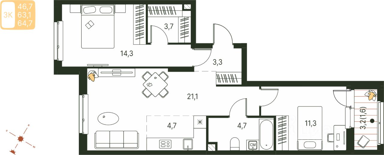 Продаётся студия в строящемся доме (Серебристая, 1), срок сдачи: IV-кв. 2027, общей площадью 64.7 кв.м., на 2 этаже. Теплые кварталы ''Погода'' — это новый грандиозный проект от создателя Спортивного микрорайона ''Ива'', федерального застройщика ''Девелопмент-Юг'' .