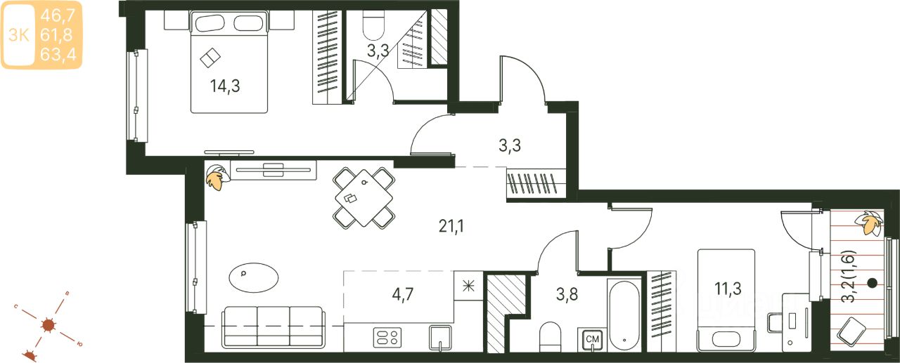 Продаётся студия в строящемся доме (Серебристая, 1), срок сдачи: IV-кв. 2027, общей площадью 63.4 кв.м., на 7 этаже. Теплые кварталы ''Погода'' — это новый грандиозный проект от создателя Спортивного микрорайона ''Ива'', федерального застройщика ''Девелопмент-Юг'' .