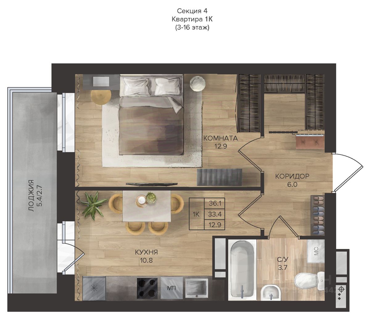 Общая площадь36,1 м2