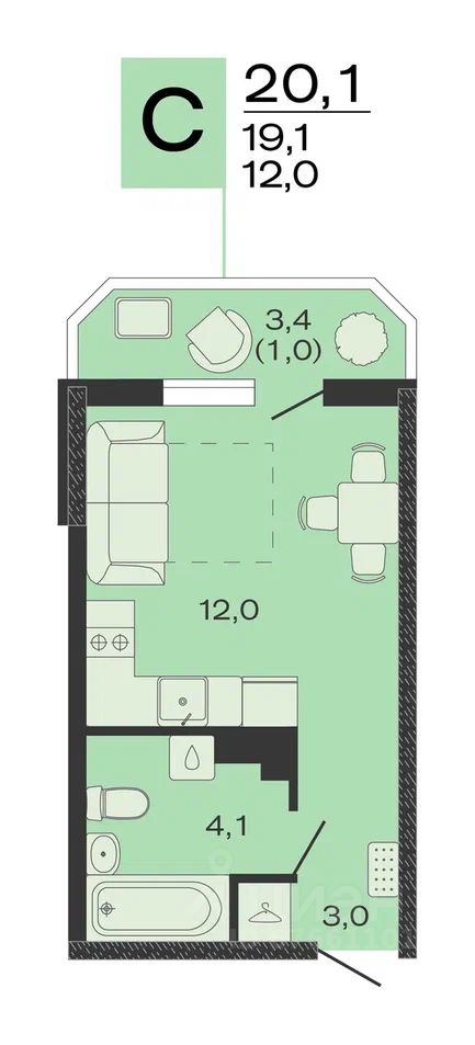 Общая площадь20,1 м2