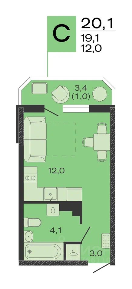 Общая площадь20,1 м2