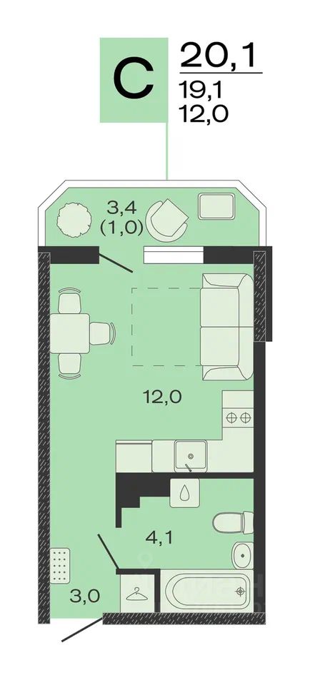 Общая площадь20,1 м2