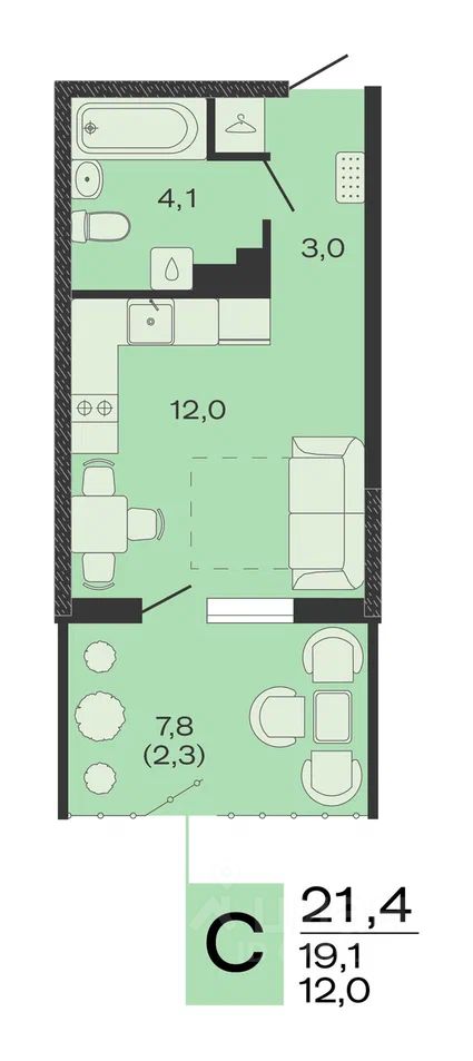 Общая площадь21,4 м2