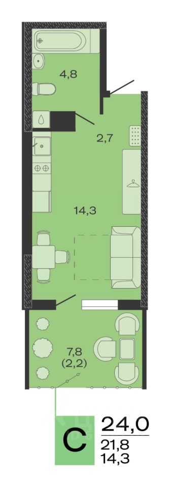 Общая площадь24 м2