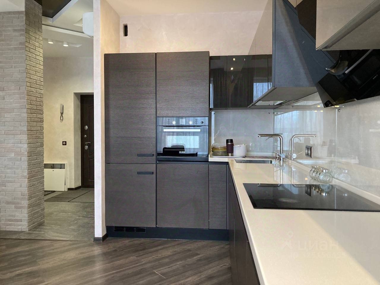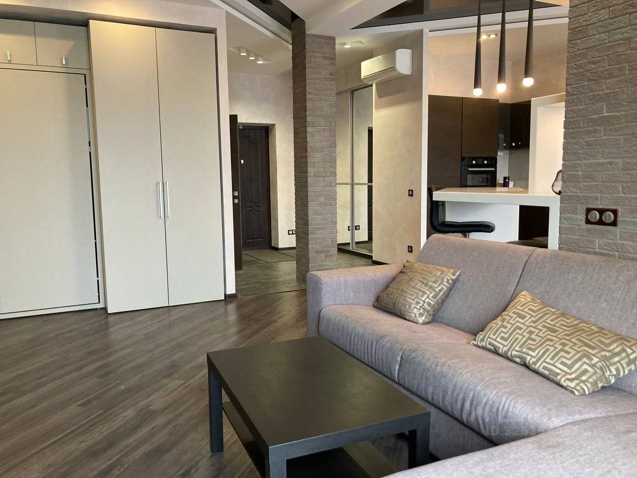 Квартира исполнена по дизайн проекту, дорогое исполнение европейскими материалами. Лучшая сантехника и кухня.