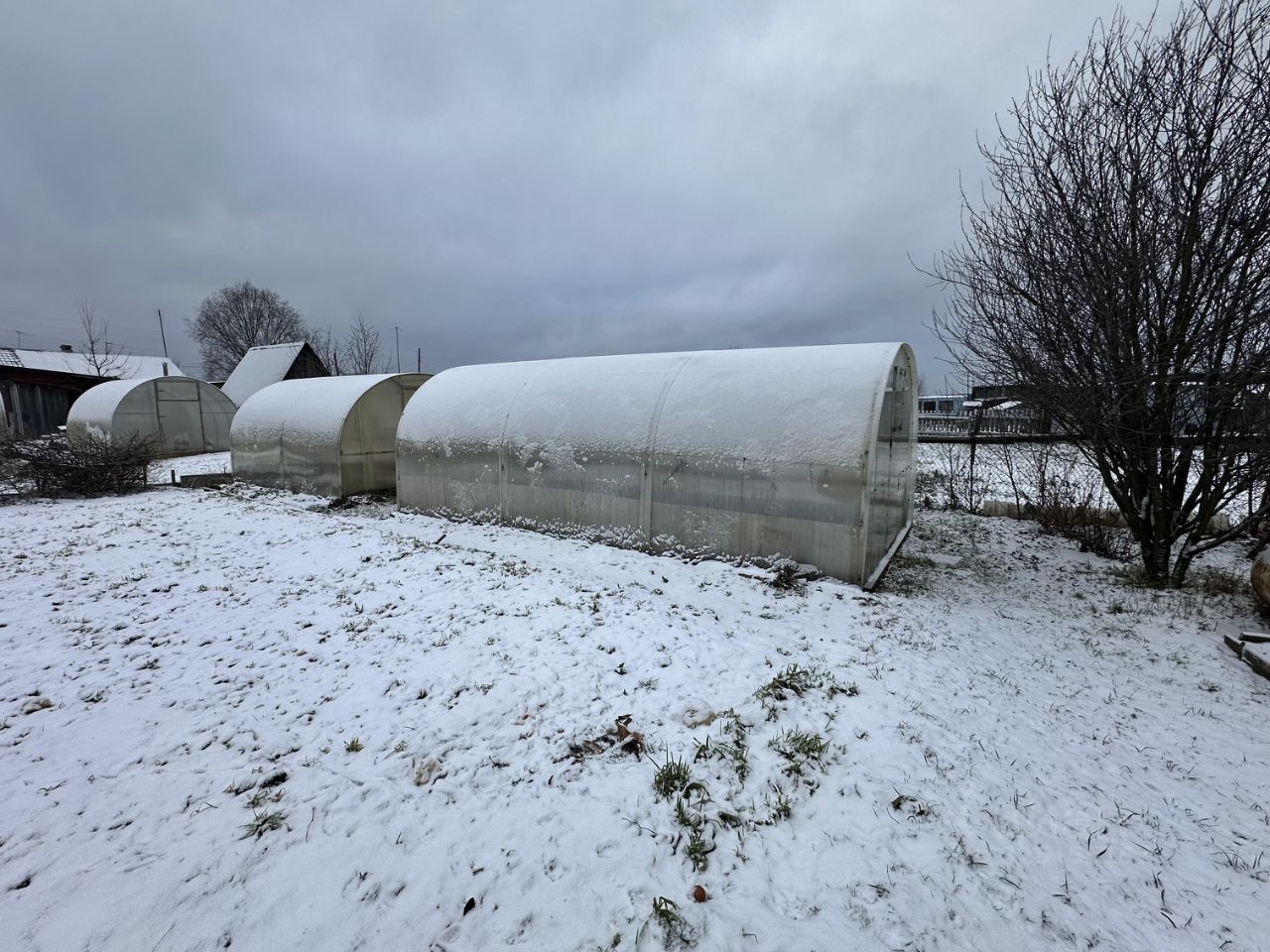 На участке баня, гараж, дровяник, огород и 2 большие теплицы.