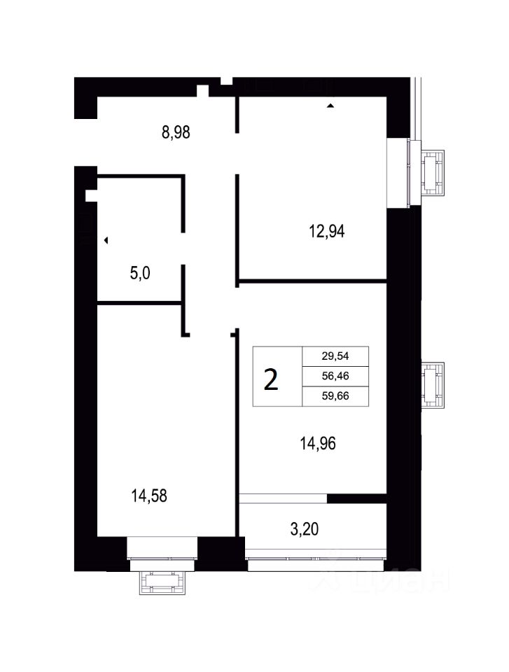 Общая площадь59,66 м2