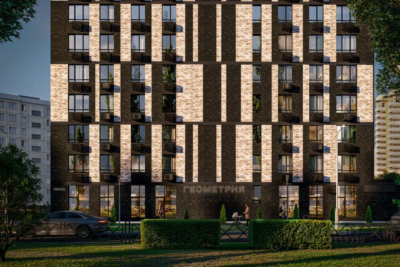 Жилой дом ''Геометрия'' — современный девятиэтажный дом по ул. им Землячки, выполненный в актуальной архитектурной концепции с акцентом на четкие линии и выразительную геометрию фасада. Конструкция возводится по трёхслойной каменной технологии с облицовочным кирпичом, минераловатным утеплителем и несущей силикатной стеной, по периметру предусмотрено витражное и оконное остекление, а также остекление лоджий. На каждом этаже расположено всего по 6 квартир с продуманной ''геометрией'' планировок, учитывающей повышенные требования к акустическому и бытовому комфорту, — исключено соседство с шумными помещениями. Двор ''Геометрии'' благоустраивается и интегрируется в полностью сформированную городскую инфраструктуру района. На закрытой территории предусматриваются собственная парковка, рекреационные зоны, проезды, озеленение, детские и спортивные площадки, а также уютные места для тихого отдыха жителей. *Не оферта. Данное предложение действительно на дату размещения и в течении 2-х дней. Актуальную стоимость уточняйте в отделе продаж в день обращения.