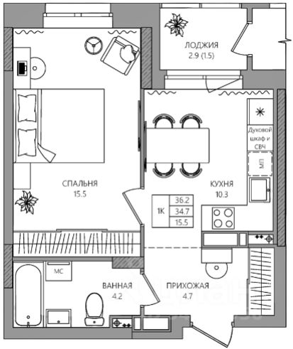 Общая площадь36,2 м2