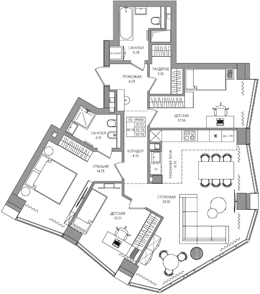 Продаётся 4-комнатная квартира в строящемся доме (К2), срок сдачи: I-кв. 2030, общей площадью 95.78 кв.м., на 24 этаже. Новый жилой комплекс ''МАНЕРЫ'' от Специализированного застройщика ''УНО'' расположен по адресу: г. Пермь, по ул. шоссе Космонавтов.