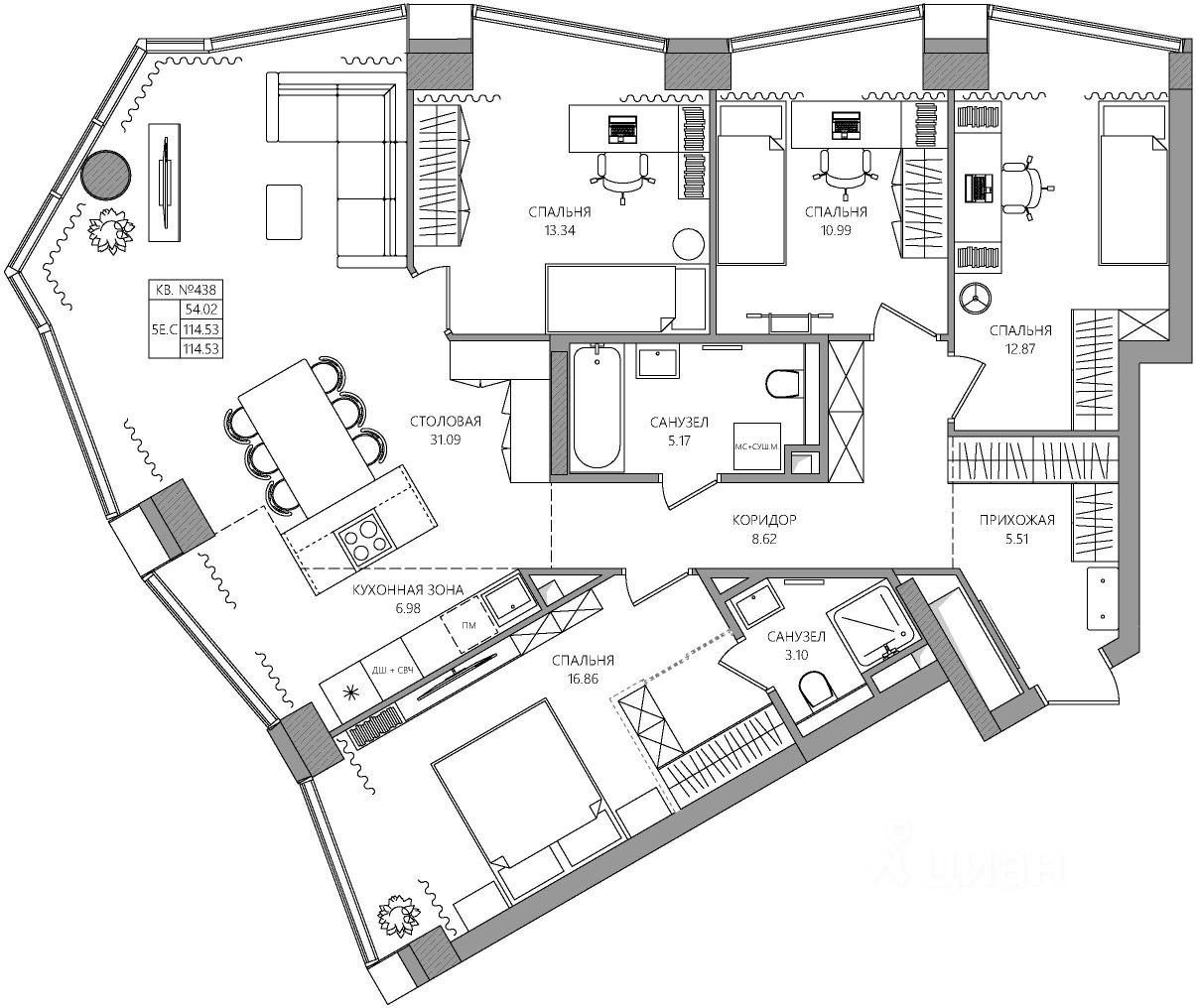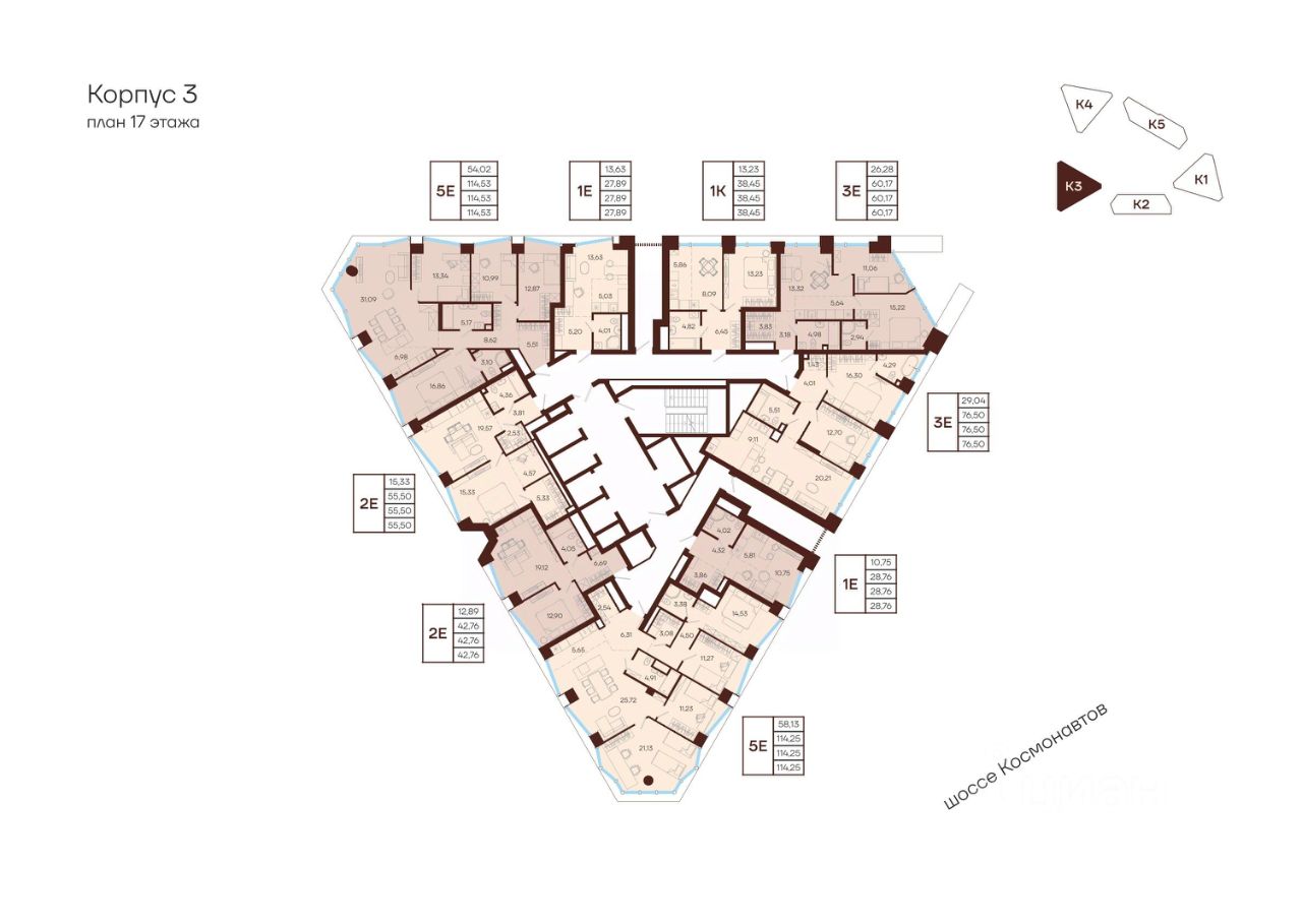 Продаётся 5-комнатная квартира в строящемся доме (К2), срок сдачи: I-кв. 2030, общей площадью 114.53 кв.м., на 17 этаже. Новый жилой комплекс ''МАНЕРЫ'' от Специализированного застройщика ''УНО'' расположен по адресу: г. Пермь, по ул. шоссе Космонавтов.