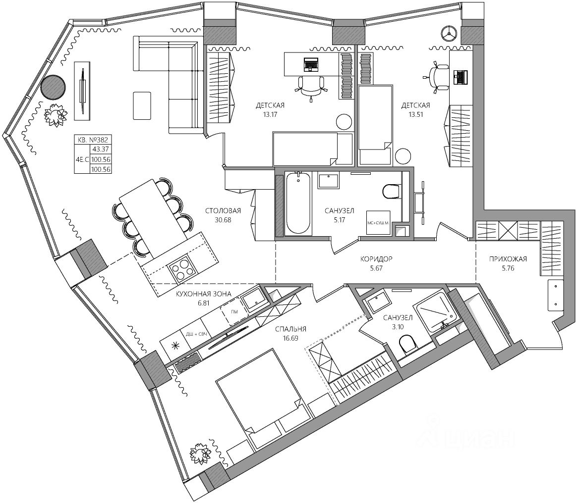 Продаётся 4-комнатная квартира в строящемся доме (К2), срок сдачи: I-кв. 2030, общей площадью 100.56 кв.м., на 11 этаже. Новый жилой комплекс ''МАНЕРЫ'' от Специализированного застройщика ''УНО'' расположен по адресу: г. Пермь, по ул. шоссе Космонавтов.