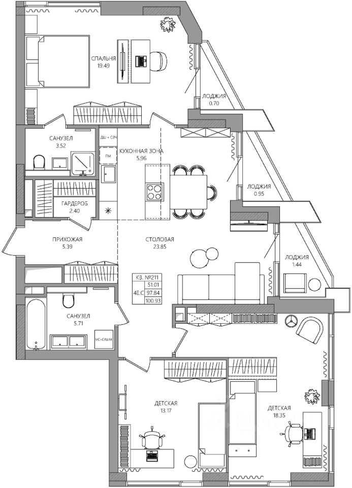 Продаётся 4-комнатная квартира в строящемся доме (К2), срок сдачи: I-кв. 2030, общей площадью 100.94 кв.м., на 4 этаже. Новый жилой комплекс ''МАНЕРЫ'' от Специализированного застройщика ''УНО'' расположен по адресу: г. Пермь, по ул. шоссе Космонавтов.